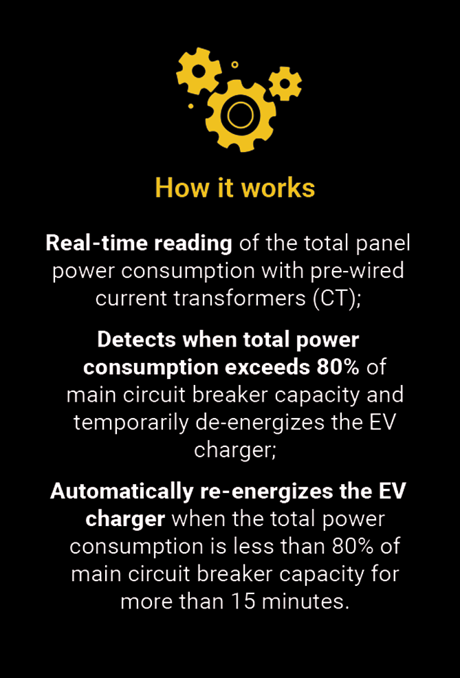 SESCO leads the way with DCC EV Energy Management by RVE. This revolutionary system enables seamless installation of EV charging stations in any residential building, overcoming consumer demands and technical limitations. DCC’s patented Electric Vehicle Energy Management System (EVEMS) integrated into a building's electrical infrastructure simplifies the process of EV charging installation without the need for extensive infrastructure upgrades. With DCC, optimize existing service capacities, mitigate overload risks and seamlessly connect EV chargers without impacting load calculations.