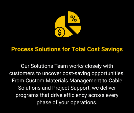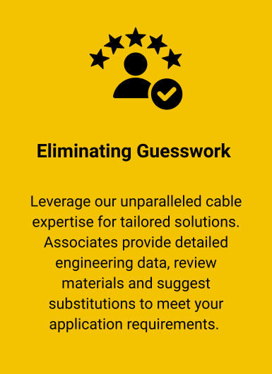 Tap into the expertise of our Wire, Cable and Conduit Specialists for tailored cabling solutions. Whether you're seeking technical advice, sourcing unique products or navigating pricing and procurement, our specialists enhance project planning and execution. For the right cables and accessories, contact us with your specific project requirements. Our centralized purchasing and product management group, backed by engineering support and our Major Projects Group, swiftly creates reliable solutions aligned with your technical specifications.